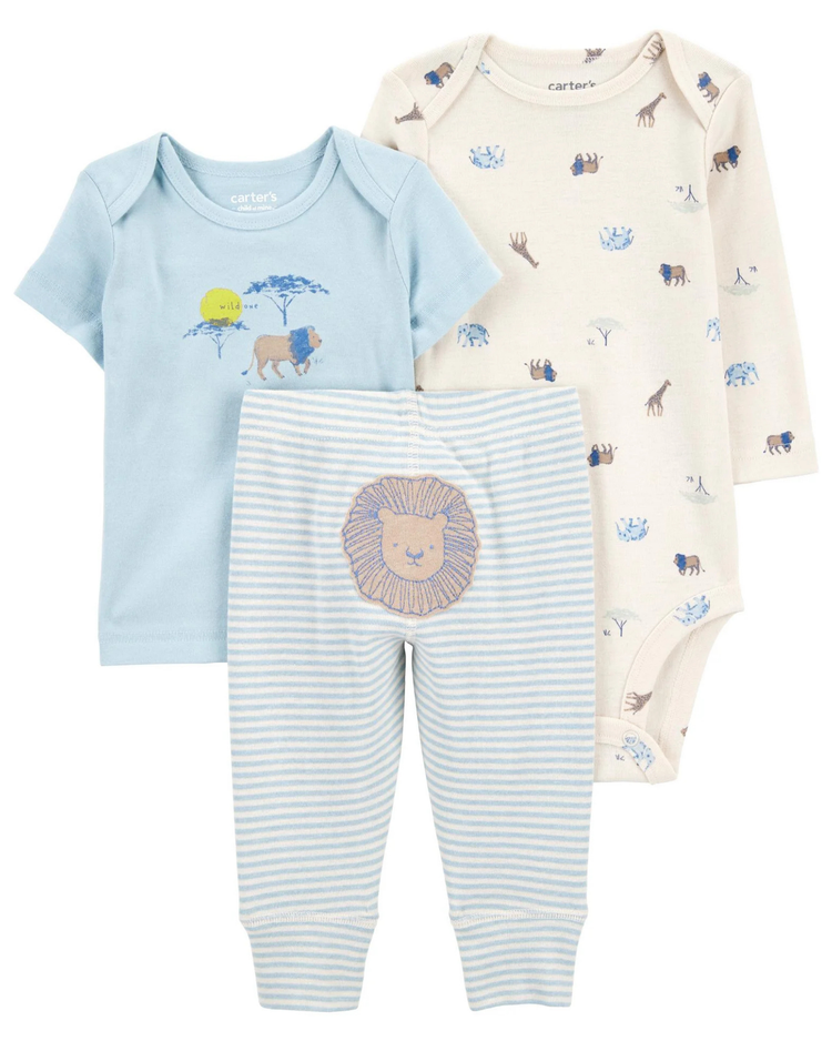 - Includes one short sleeve shirt, one short sleeve bodysuits, one pull-on pants