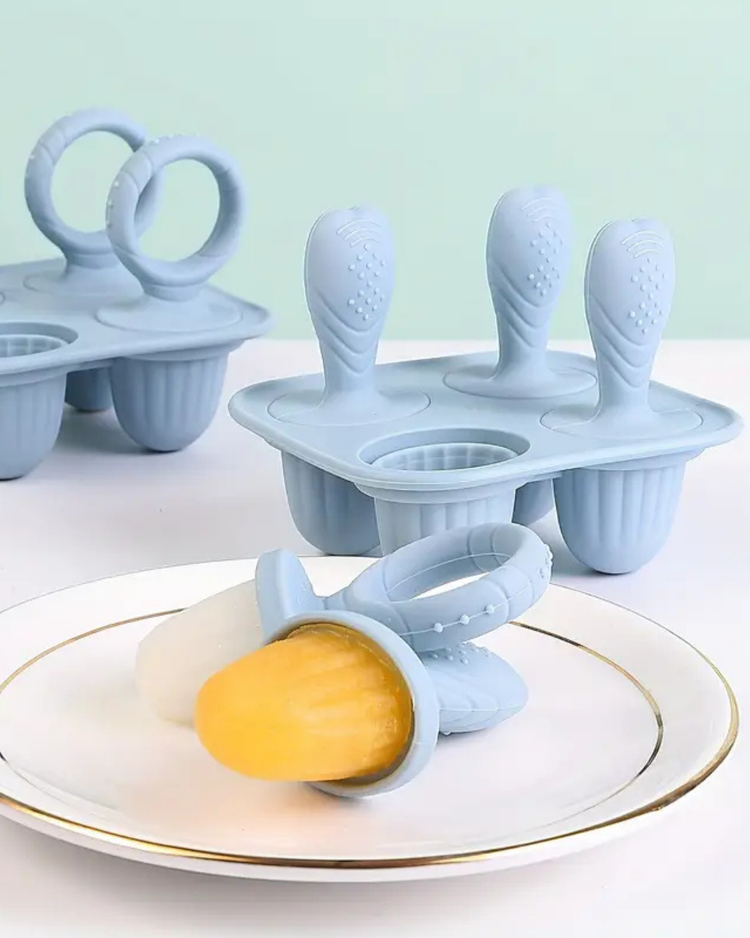 - No Hard Plastic Handle - Just soft, textured silicone that is gentle on tender gums and easy to grasp. The first infant popsicle mold with a completely silicone handle safe for teething on.